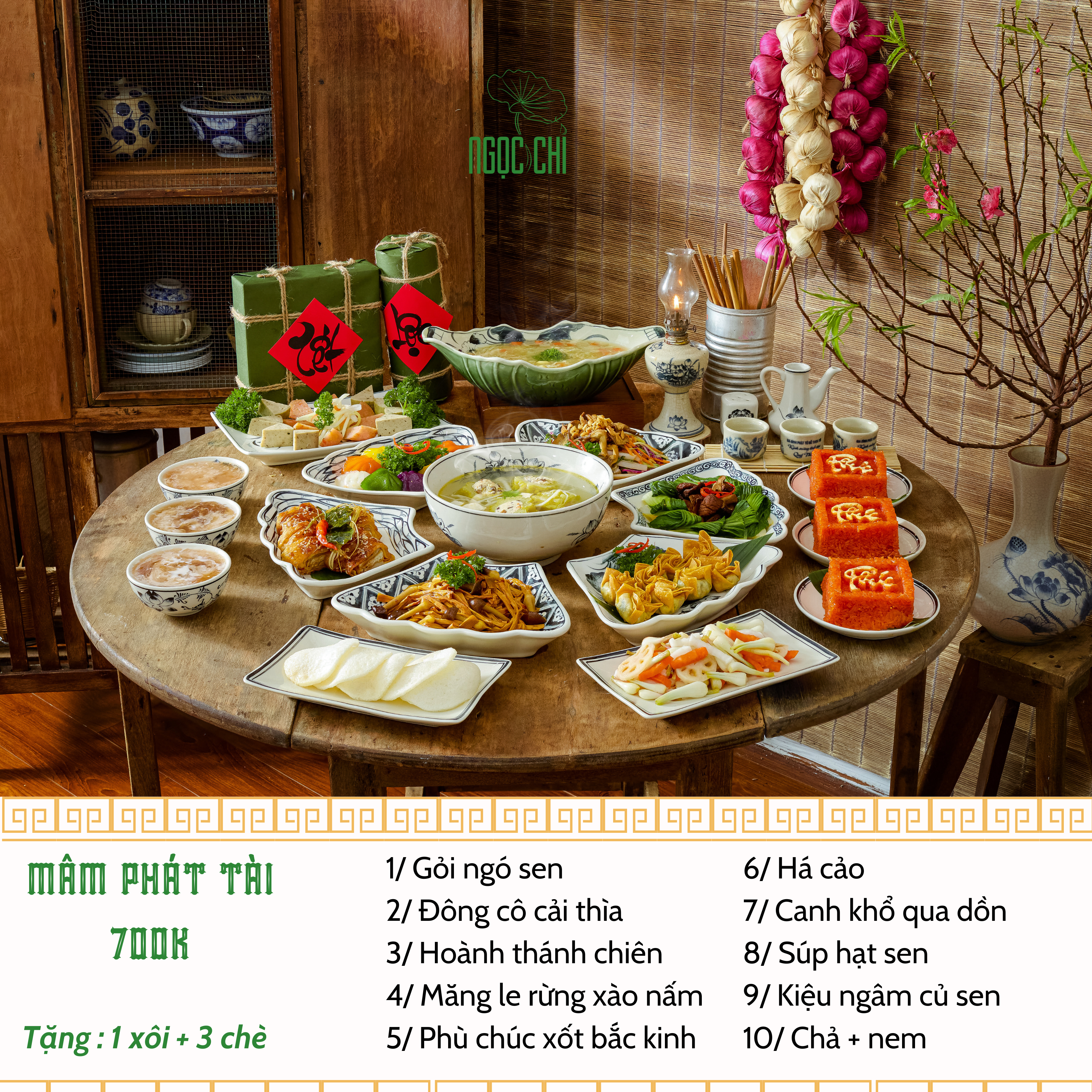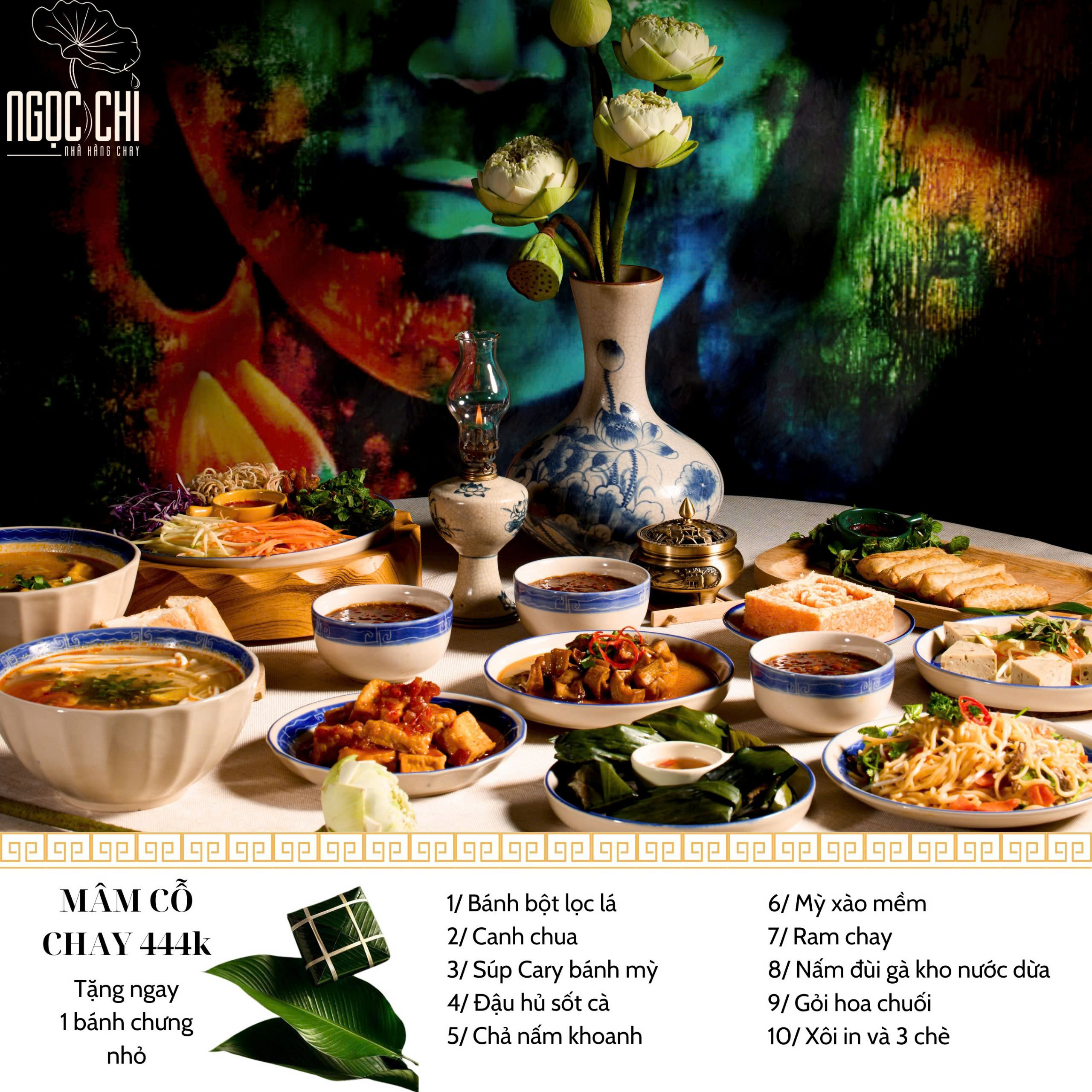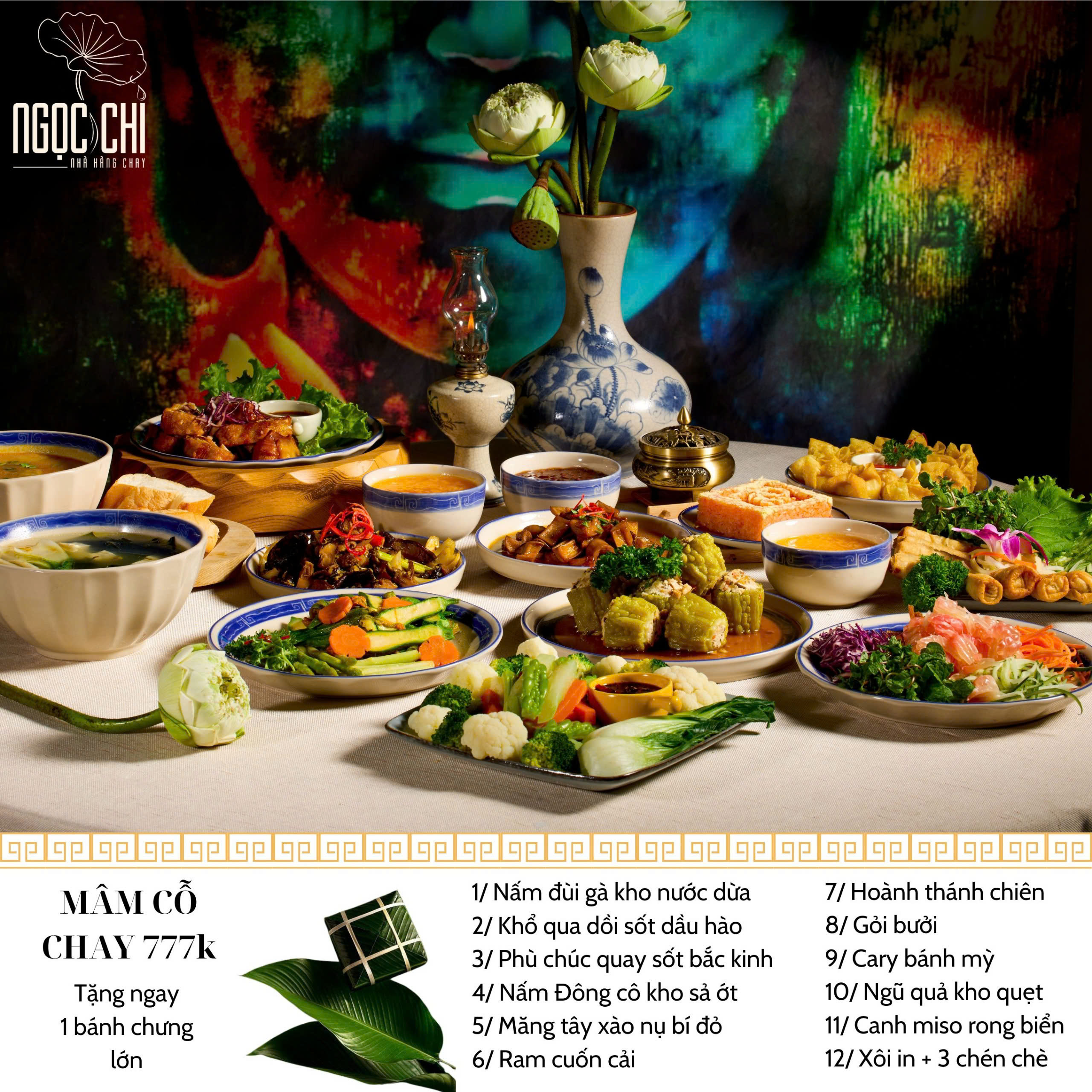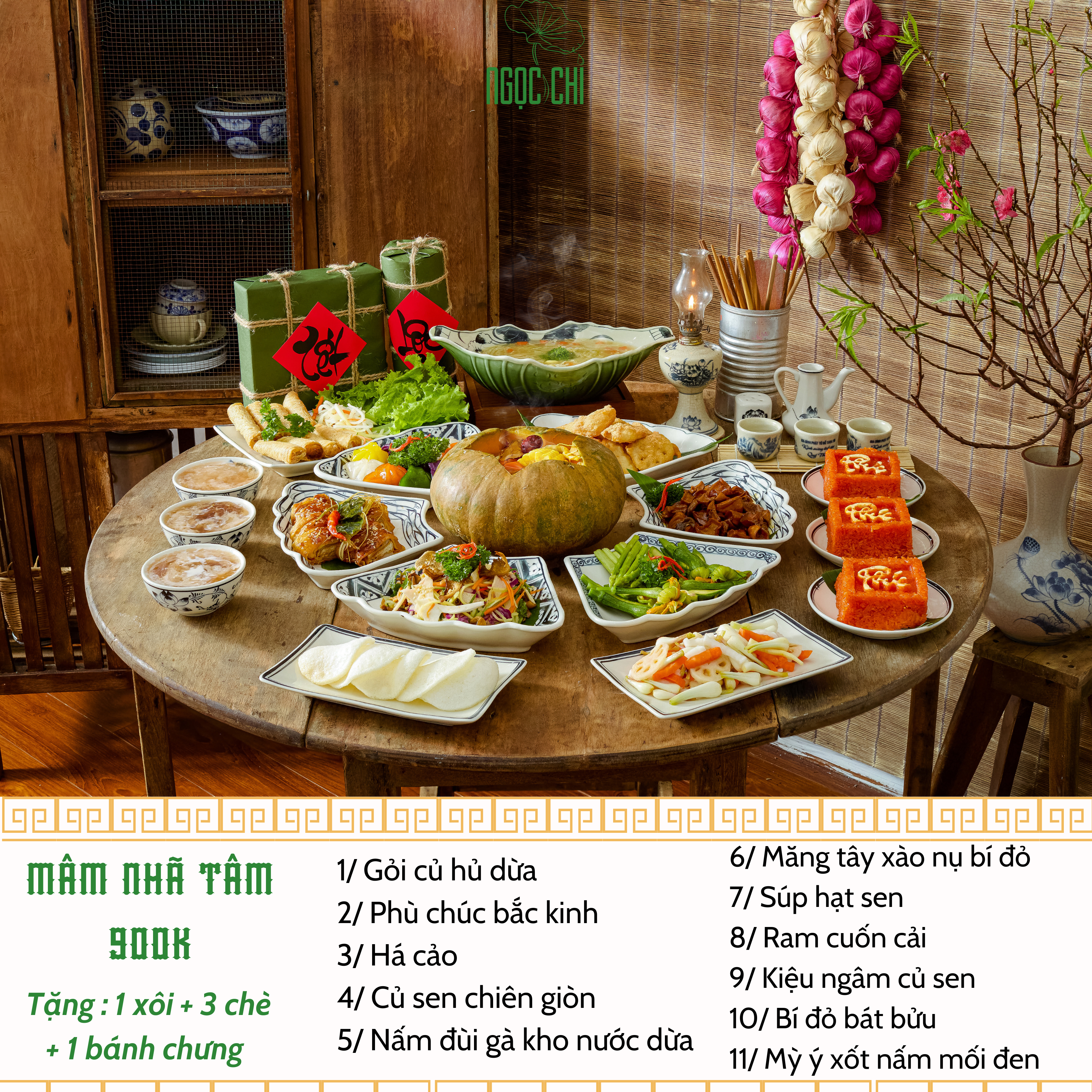 Tại Ngọc Chi mâm cúng chay rất đa dạng, từ các mâm cúng bàn thờ ông địa, đến cúng xe, cúng đất, cúng động thổ, ma mới, tất niên…đều được các đầu bếp Ngọc Chi nấu bằng chính sự tâm huyết của mình, sau đó được đóng gói kĩ và gởi tận tay đến gia chủ.