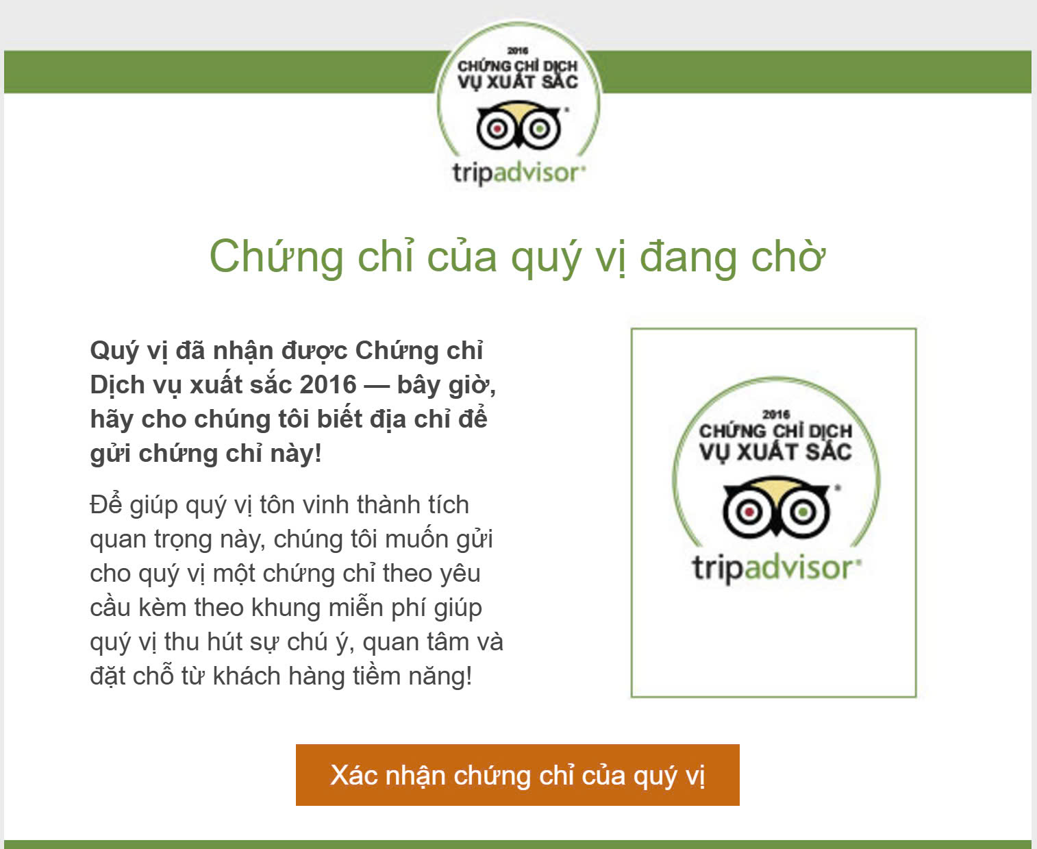 GIẢI THƯỞNG TRAVELER’S CHOICE OF TRIPADVISOR